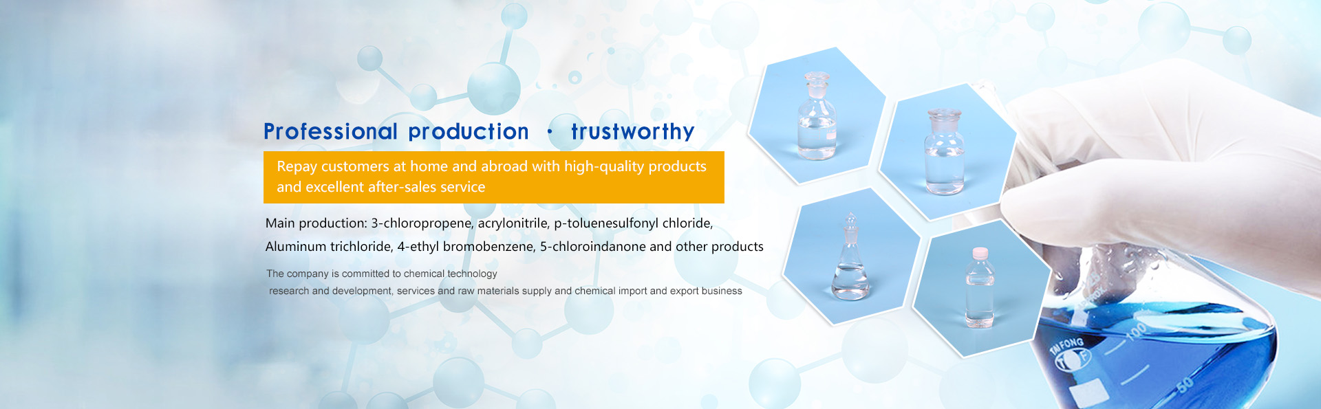 The company is committed to chemical technology research and development, service and raw material supply, and chemical import and export business
